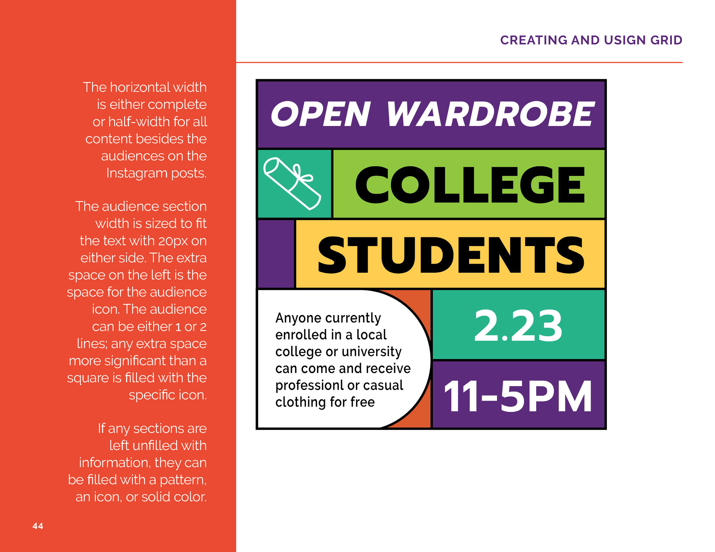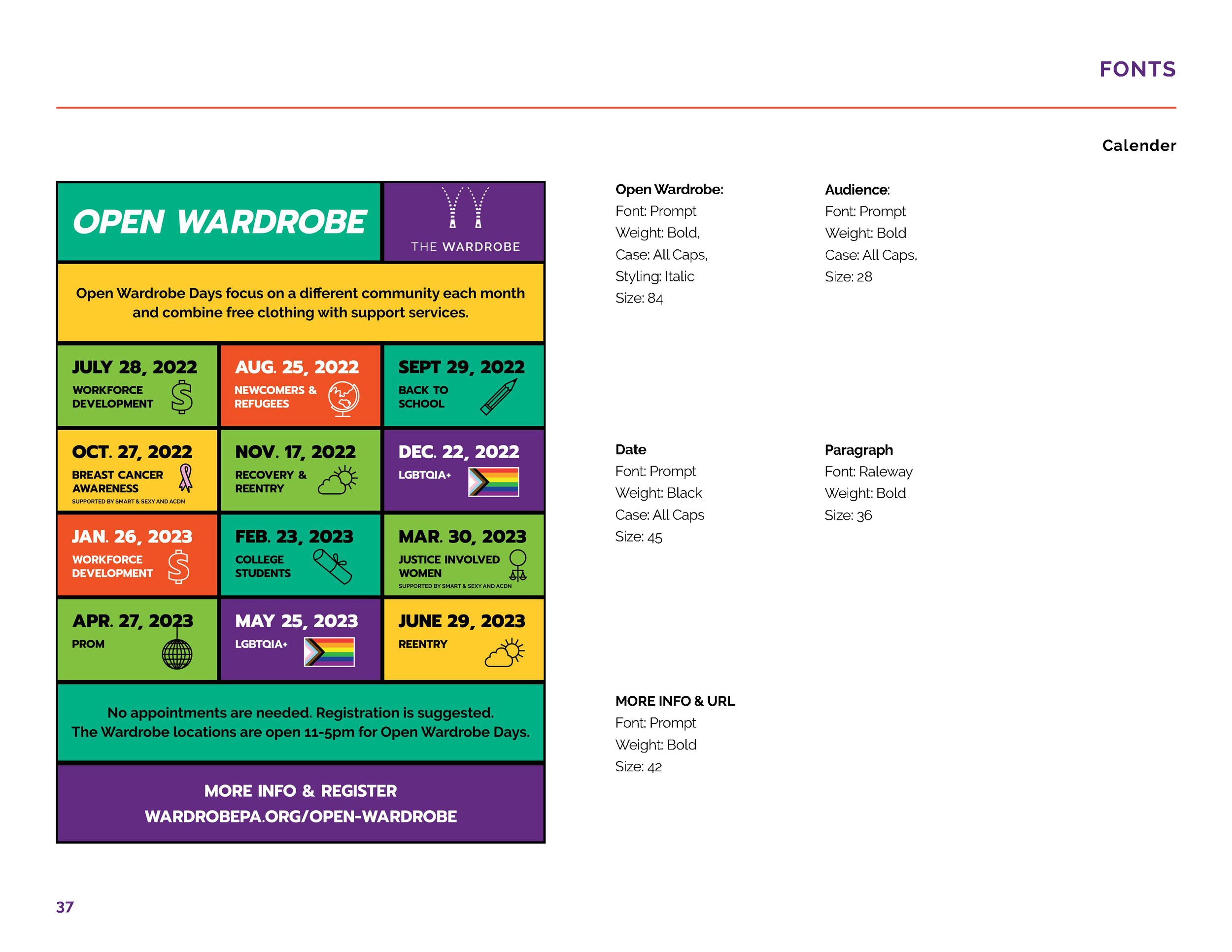 Our team worked with the Wardrobe to help rebrand their events. We split into smaller groups to work on the events: Fashion Dash, VIP Party, and Open Wardrobe. After all was completed, a Brand Guidelines Handbook was needed for the Wardrobe.